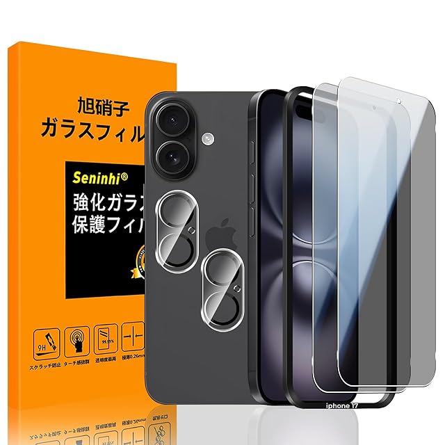 対応 iPhone 17 ガラスフイルム のぞき見防止 【 iPhone17 フイルム(2枚入り) カメラフィルム(2枚入り) ガイド枠 】強化ガラス アイフォン17 保護フィルム 【撥油性 超耐久 高光沢 超薄型 液晶 硬度9H 防指紋 衝撃吸収 貼り付け簡単 高透過率 飛散防止 気泡なし極薄 ラウンドエッジ加工 のぞき見防止 横から見えない 】SENLX-FKIP17