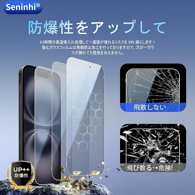 【Seninhi】 iPhone17 保護フィルム最新登場!!!<br><b> <br><b> <br><b>について: iPhone17ガラスフィルム <br><b>【割れにくい強化素材】</b> <br>2倍強化テクノロジー" を採用している、4時間以上強化処理を経て、市販の強化ガラスと比べ2倍の強度を持ています。 <br><b>【飛散防止】</b> <br>万一割れてしまったとしてもガラスが飛び散らずにより安全に処理できます。 <br> <br><b>【鮮明の画面】</b> <br>装着しているのを忘れるほど、高い透過性があります。 デバイ <br>スが持つ高精細な画面の美しさはそのまま! 携帯電話本来の画面を楽しむことができます。 <br> <br><b>【滑り抜群】</b> <br>さらさら手触り! <br>優れたウィンドウディスプレイを持ち、指滑らかで、好感度で快適操作。 <br> <br><b>【日本製素材旭硝子製】</b> <br>世界最先端のテクノロジーを誇る旭硝子社製のガラスフィルムです。 <br>鍵やナイフなど鋭利なもので切りつけても傷がつきにくいガラスフィルムです。 <br> <br><b>【指紋防止、コーディング耐油】</b> <br>汗や汚れがついても拭き取るだけ。簡単なメンテナンスで携帯電話の液晶を常に綺麗に保つことができます。 <br> <br><b>\【カスタマーサービス】</b> <br>商品使用中、「通常使用で割れてしまった」や「空気が入ってしまった」などの場合。 <br>全ての品質上の問題とも弊社にご遠慮なく連絡ください。なお、対応の際に、お写真や現品にて不具合確認を取らせていただきます。 <br> <br><b>【ご連絡の方法】 <br>アカウントサービス内の「アカウントサービス」→「注文履歴」→「販売元」→「質問する」から、お気軽にお問合せ下さい。 <br>スムーズに問題を解決するため、不具合の写真とご注文番号を添付してご連絡をお願いいたします。 <br> <br> <b>◆Seninhiについて◆ <br>Seninhi——業界で先頭を切って簡単な張り付け方法を研究し、自動吸着、ガイド付きなどの風潮を助成しました。 <br> <br>長年にわたって、私たちはずっと堅守して初心を忘れず、高品質の製品を安定提供するために技術開発に絶えず挑戦し、 <br>事業資金の大半を商品開発とアップグレードに投入しております。 <br> 私たちは、お客様の要望に応え、十分満足いただけるような魅力ある <br>サービスと、安心で良質な製品の提供ができるよう努めます。
