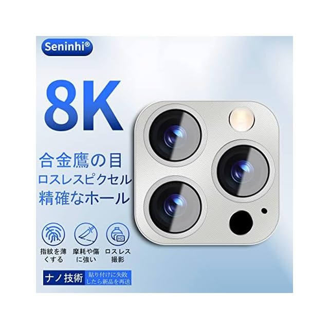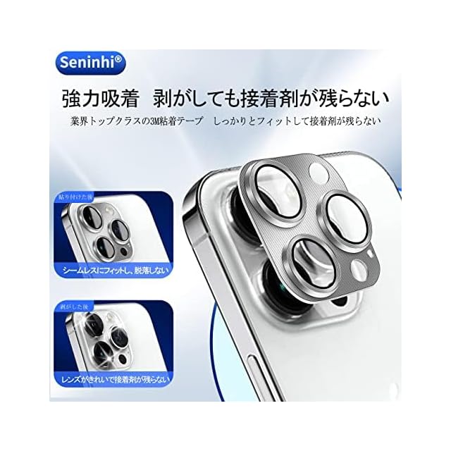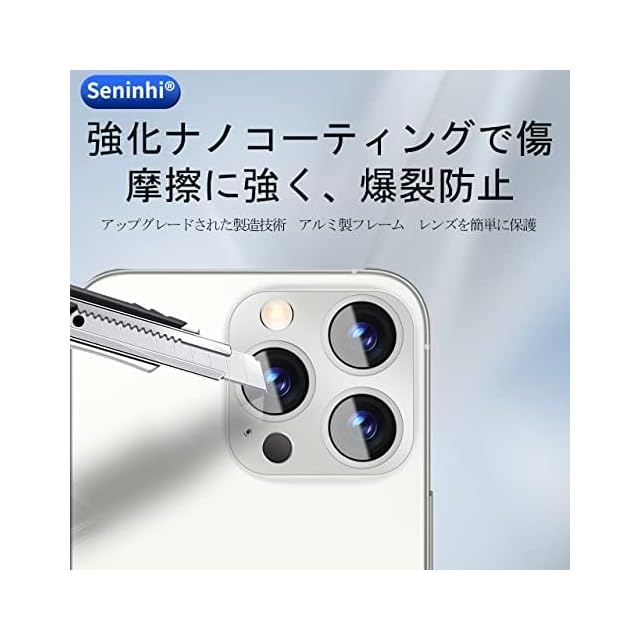 商品名:【 Seninhi 】対応 iPhone 14 Pro / 14 Pro Max レンズ保護フィルム 【 日本旭硝子製素材 - 高 品質 】対応 14Pro / 14ProMax カメラフィルム アルミ合金製 アイフォン14 Pro レンズフィルム 強化ガラス 14Pro / 14Pro Max 保護フィルム ケース カバー 防爆裂 一体感 撥油性 超耐久 高光沢 超薄型 液晶 防塵 防滴 薄型 硬度9H 防指紋 衝撃吸収 貼り付け簡単 鎧のパターン仕様 (iPhone 14 Pro-シルバー)