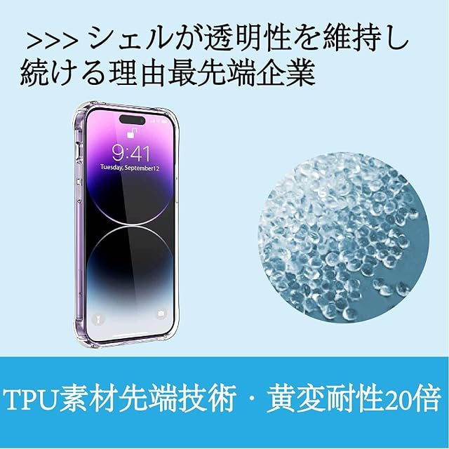 ★★★【 黄変防止・指紋防止】 環境に優しい抗酸化処理が施されており、何年も黄変することはありません。 透明携帯ケースは高品質のTPU素材を採用し、酸化を防ぐ特殊加工を使って、黄ばみにくく、透明感を長期間保持します。表面の高精度の特殊処理と防汚バイオテクノロジーを使って、指紋や油汚染の問題を完全に解決しました。指紋や油膜のベタつきがなく、手触り感じがよく、落下のリスクも減らします。