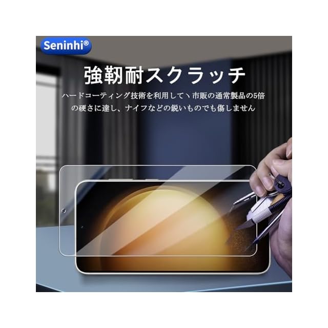 【Seninhi】Galaxy S24 5G 保護フィルム最新登場!!!<br><b> <br><b> <br><b>について: Galaxy S24 5G ガラスフィルム <br><b>【割れにくい強化素材】</b> <br>2倍強化テクノロジー" を採用している、4時間以上強化処理を経て、市販の強化ガラスと比べ2倍の強度を持ています。 <br><b>【飛散防止】</b> <br>万一割れてしまったとしてもガラスが飛び散らずにより安全に処理できます。 <br> <br><b>【鮮明の画面】</b> <br>装着しているのを忘れるほど、高い透過性があります。 デバイ <br>スが持つ高精細な画面の美しさはそのまま! 携帯電話本来の画面を楽しむことができます。 <br> <br><b>【滑り抜群】</b> <br>さらさら手触り! <br>優れたウィンドウディスプレイを持ち、指滑らかで、好感度で快適操作。 <br> <br><b>【日本製素材旭硝子製】</b> <br>世界最先端のテクノロジーを誇る旭硝子社製のガラスフィルムです。 <br>鍵やナイフなど鋭利なもので切りつけても傷がつきにくいガラスフィルムです。 <br> <br><b>【指紋防止、コーディング耐油】</b> <br>汗や汚れがついても拭き取るだけ。簡単なメンテナンスで携帯電話の液晶を常に綺麗に保つことができます。 <br> <br><b>【カスタマーサービス】</b> <br>商品使用中、「通常使用で割れてしまった」や「空気が入ってしまった」などの場合。 <br>全ての品質上の問題とも弊社にご遠慮なく連絡ください。なお、対応の際に、お写真や現品にて不具合確認を取らせていただきます。 <br> <br><b>【ご連絡の方法】 <br>アカウントサービス内の「アカウントサービス」→「注文履歴」→「販売元」→「質問する」から、お気軽にお問合せ下さい。 <br>スムーズに問題を解決するため、不具合の写真とご注文番号を添付してご連絡をお願いいたします。 <br> <br> <b>◆Seninhiについて◆ <br>Seninhi——業界で先頭を切って簡単な張り付け方法を研究し、自動吸着、ガイド付きなどの風潮を助成しました。 <br> <br>長年にわたって、私たちはずっと堅守して初心を忘れず、高品質の製品を安定提供するために技術開発に絶えず挑戦し、 <br>事業資金の大半を商品開発とアップグレードに投入しております。 <br> 私たちは、お客様の要望に応え、十分満足いただけるような魅力ある <br>サービスと、安心で良質な製品の提供ができるよう努めます。