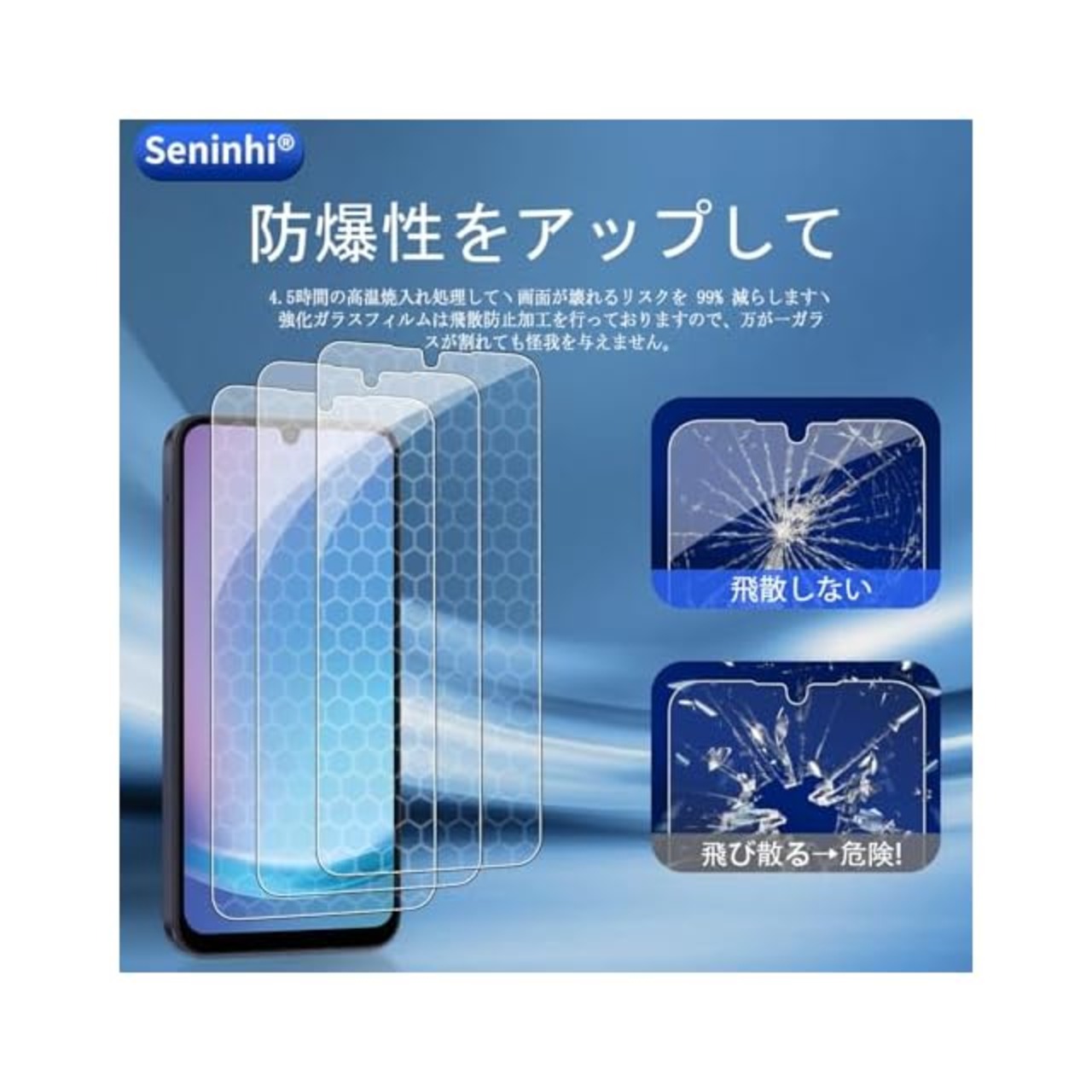 【Seninhi】Galaxy A25 5G 保護フィルム最新登場!!!<br><b> <br><b> <br><b>について: Galaxy A25 5G ガラスフィルム <br><b>【割れにくい強化素材】</b> <br>2倍強化テクノロジー" を採用している、4時間以上強化処理を経て、市販の強化ガラスと比べ2倍の強度を持ています。 <br><b>【飛散防止】</b> <br>万一割れてしまったとしてもガラスが飛び散らずにより安全に処理できます。 <br> <br><b>【鮮明の画面】</b> <br>装着しているのを忘れるほど、高い透過性があります。 デバイ <br>スが持つ高精細な画面の美しさはそのまま! 携帯電話本来の画面を楽しむことができます。 <br> <br><b>【滑り抜群】</b> <br>さらさら手触り! <br>優れたウィンドウディスプレイを持ち、指滑らかで、好感度で快適操作。 <br> <br><b>【日本製素材旭硝子製】</b> <br>世界最先端のテクノロジーを誇る旭硝子社製のガラスフィルムです。 <br>鍵やナイフなど鋭利なもので切りつけても傷がつきにくいガラスフィルムです。 <br> <br><b>【指紋防止、コーディング耐油】</b> <br>汗や汚れがついても拭き取るだけ。簡単なメンテナンスで携帯電話の液晶を常に綺麗に保つことができます。 <br><br><b>【カスタマーサービス】</b> <br>商品使用中、「通常使用で割れてしまった」や「空気が入ってしまった」などの場合。 <br>全ての品質上の問題とも弊社にご遠慮なく連絡ください。なお、対応の際に、お写真や現品にて不具合確認を取らせていただきます。 <br> <br><b>【ご連絡の方法】 <br>アカウントサービス内の「アカウントサービス」→「注文履歴」→「販売元」→「質問する」から、お気軽にお問合せ下さい。 <br>スムーズに問題を解決するため、不具合の写真とご注文番号を添付してご連絡をお願いいたします。 <br> <br> <b>◆Seninhiについて◆ <br>Seninhi——業界で先頭を切って簡単な張り付け方法を研究し、自動吸着、ガイド付きなどの風潮を助成しました。 <br> <br>長年にわたって、私たちはずっと堅守して初心を忘れず、高品質の製品を安定提供するために技術開発に絶えず挑戦し、 <br>事業資金の大半を商品開発とアップグレードに投入しております。 <br> 私たちは、お客様の要望に応え、十分満足いただけるような魅力ある <br>サービスと、安心で良質な製品の提供ができるよう努めます。