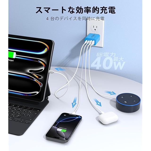 合計40W 急速充電器 USB コンセント Type-C 充電器 ACアダプター USB Aポート & USB Cポート PD 20W iPhone 充電器 アダプタ タイプc 充電器 USB 電源タップ iPhone iPad Android その他各種機器対応(ベビーブルー)