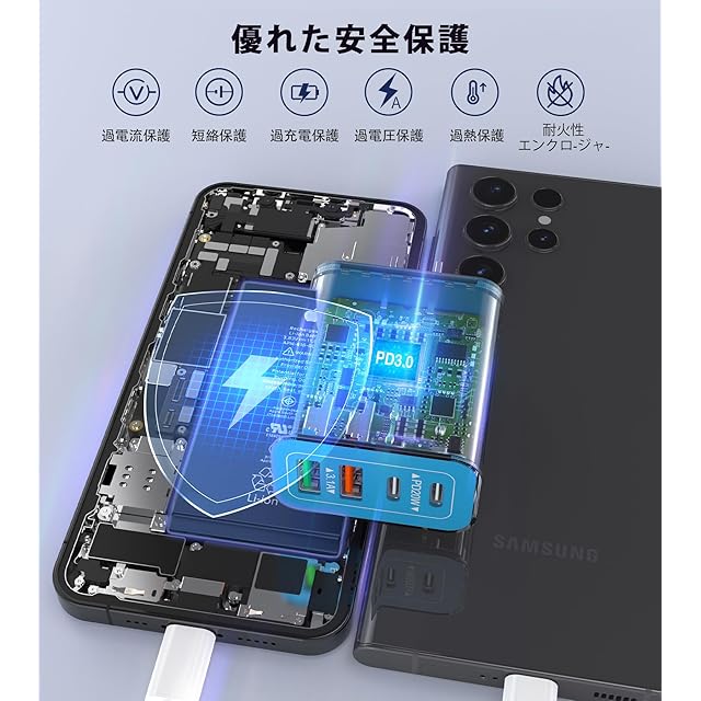 ⚡【マルチポートUSBコンセント】:タイプc 充電器は、デュアル USB-C ポートとデュアル USB-A ポートがあります。ユーザーは電話、タブレット、ヘッドフォンを同時に充電して、待ち時間を最小限に抑えることができます。また、4 つの壁コンセント ポートを占有する代わりに、スペースを節約できます。元の USB 充電器の最高の代替品です。