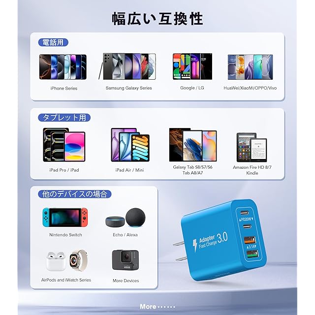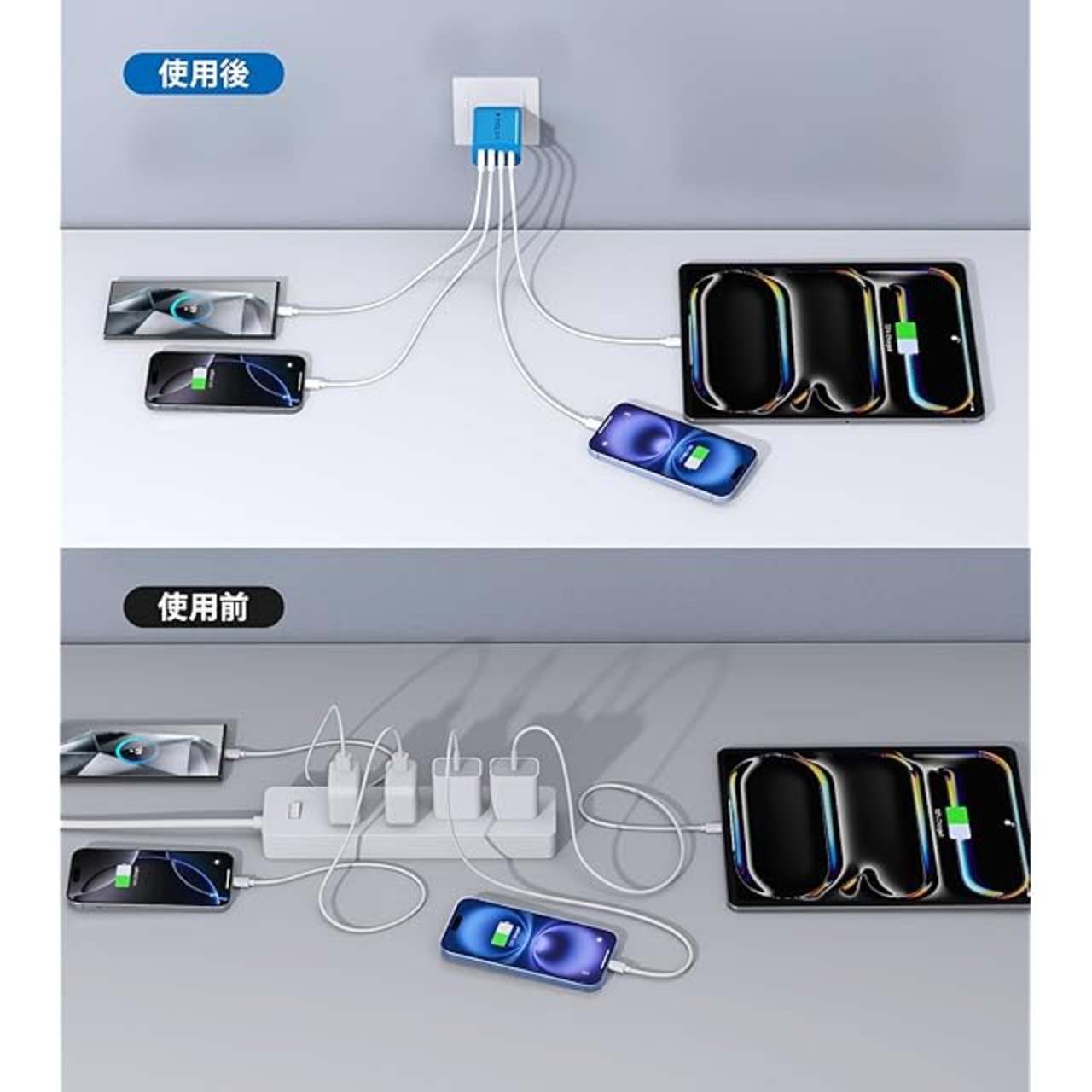 ⚡【ユニバーサル互換性PD充電器】: タイプc アダプタは特別な 4 ポートのため、ほぼすべての電子機器と互換性があります。iPhone 16/15/15 Pro /15 Pro Max/14/14 Pro/14 Pro Max/13/13 Mini/13 Pro Max/12/12 Pro Max/12 Pro Max/12 Mini/SE 2020/11/11 Pro/11 Pro Max/XR/XS/X/8/7、iPad Air/Pro/Mini、Samsung Galaxy、Haiwei、Xiaomi、タブレット、LG、Motorola、Google Pixel などのデジタル機器と互換性のある充電ステーションです。