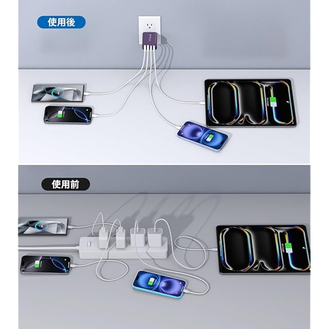 ⚡【ユニバーサル互換性PD充電器】: タイプc アダプタは特別な 4 ポートのため、ほぼすべての電子機器と互換性があります。iPhone 17/16/15/15 Pro /15 Pro Max/14/14 Pro/14 Pro Max/13/13 Mini/13 Pro Max/12/12 Pro Max/12 Pro Max/12 Mini/SE 2020/11/11 Pro/11 Pro Max/XR/XS/X/8/7、iPad Air/Pro/Mini、Samsung Galaxy、Haiwei、Xiaomi、タブレット、LG、Motorola、Google Pixel などのデジタル機器と互換性のある充電ステーションです。