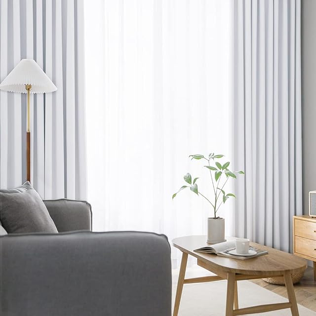 AIFY カーテン 4枚セット 99.9%以上遮光 小窓 ドレープカーテン UVカット 形態記憶加工済み 断熱 節電対策 昼夜目隠し 保温 おしゃれ 洗える 洗濯機対応 (カーテン2枚 レース2枚) 幅100cm×丈220cm アイスグレー