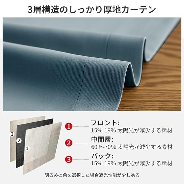 【プライバシーを守る】室内の光を外に漏れにくくする効果があるだけではなく、夜に部屋の明かりを付けている時でも外から人影が見えづらく、プライバシーを守ることができます。女性の一人暮らしでもこのカーテンなら安心感を得られる。