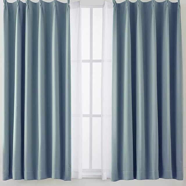 AIFY カーテン 4枚セット 1級 遮光 小窓 ドレープカーテン UVカット 形態記憶加工済み 断熱 節電対策 昼夜目隠し 保温 おしゃれ 洗える 洗濯機対応 (カーテン2枚 レース2枚) 幅100cm×丈110cm ストーンシアン