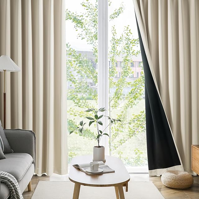 AIFY カーテン 2枚セット 99.9%以上遮光 高い機能性 高密度な生地 黒裏地タイプ 小窓 ドレープカーテン UVカット 形態記憶加工済み 断熱 節電対策 昼夜目隠し 保温 おしゃれ 洗える 洗濯機対応 幅150 cm×丈220 cm ベージュ