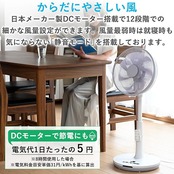 【DCモーター搭載】ここちよい風を送ってくれるDCモーター搭載のリビング扇風機。DCモーターで羽を回すことで、ACモーターよりも羽根の回転を幅広く設定できるので、小さな風を効率よく起こすことが可能です。消費電力も少なくて済み、節電にもつながります。
