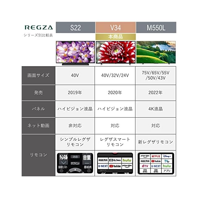 商品名:REGZA 24V型 液晶テレビ レグザ 24V34 ハイビジョン 外付けHDD 裏番組録画 ネット動画対応 (2020年モデル)