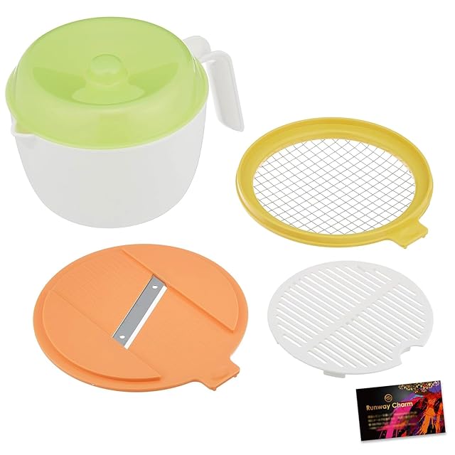 【製品仕様】生産地:日本 商品サイズ:約134×190×122mm 商品重量:約223g 素材:ボウル・フタ・目皿・ポリプロピレン、こし網枠・スライサープレート・ABS樹脂、網・ステンレス鋼、刃部・ステンレス刃物鋼 内容:製品本体、RunwayCharmステッカー付(※ステッカーの付属がない場合は当店またはにご連絡ください)商標登録番号:登録第6442206号