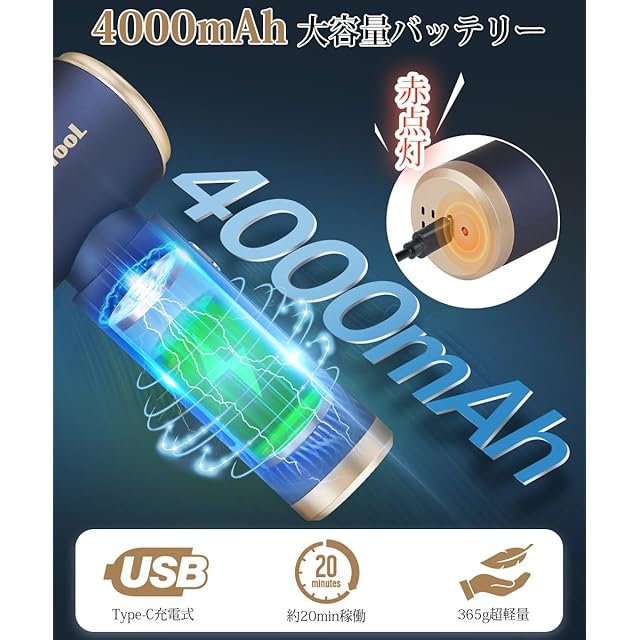 【4000mAh内蔵バッテリー・USB充電式】ハンディ掃除機は大容量4000mAhバッテリーが内蔵され、約3.5時間のフル充電で20分連続使用可能です。USB充電式ので、万が一充電を忘れた場合、付属のケーブルに接続し充電できます。コードレス式で、家/オフィス/車どこでもとても便利です。最初に使用する前に完全に充電してください。5V/1Aのプラグのご使用をお勧めいたします。