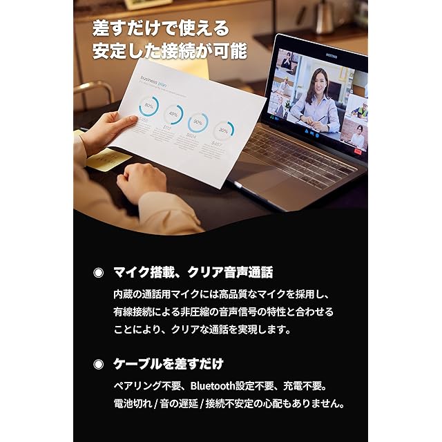 【今の時代、有線イヤホンを使う理由?】ペアリング不要、Bluetooth設定不要、充電不要。いつでも、どこでも、ケーブルを差すだけですぐに使える。電池切れ、音の遅延、接続不安定の心配は一切なし。オンライン会議に最適。Bluetooth機能のないデスクトップパソコンにも使えます。【高音質なオーディオ体験】12mmという大口径ドライバーと本体形状の開放型の特性に合わせて音質チューニングを施し、開放的で広がりのある音場と圧迫感のない自然な低音感のあるサウンドを実現。音楽リスニングや動画視聴、ゲームアプリなどを音場感あるサウンドで楽しめます。