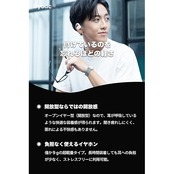 【耳を塞がない新感覚 3.5mm有線イヤホン】負担なく使えるオープンイヤー イヤホン。従来のイヤホン特有の聞き疲れや耳の中の蒸れによる不快感がなく、⻑時間使用しても疲れにくい。空気伝導を採用したため、骨伝導イヤホンより違和感が少なく、骨伝導で聴きなれない方にはぜひこちらの空気伝導イヤホンがおすすめです。【ながら聴き イヤホン】周りの音が聞こえる安心感。耳を塞がないため、周囲に気を配りながら音楽や番組を楽めます。外出時に車が迫る音、電車のアナウンス、いざとなる時の警報音、家事または仕事中の呼びかけ音などを聞き逃す心配はありません。また、耳を塞がないので自分の話し声がこもらず聞こえるため、毎回取り外す必要がなく、装着したまま自然な会話が可能。