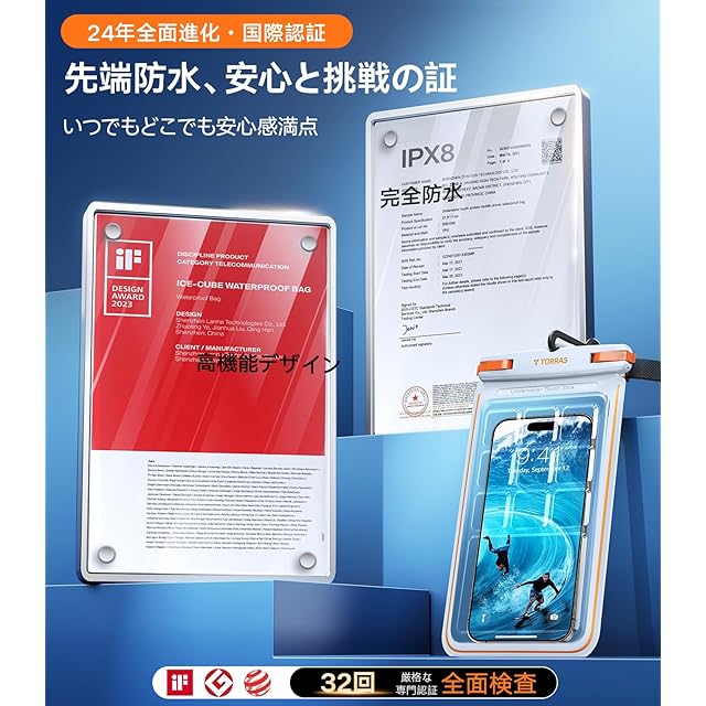 【防水ケース性能第 1 位!TORRAS だけがこの基準を達成】2025 年全面アップグレード!最高水準を達成!①最新シールドテクノロジーで良品率 97% ②95A TPU 素材で耐摩耗・高透明 ③精密 ABS ロックヘッドで水漏れゼロ!夏のプールでは子供との水遊びを記録し、浴室では泡だらけの手でもスムーズに操作。365 日品質付きで、安心して海や温泉に持ち込もう!