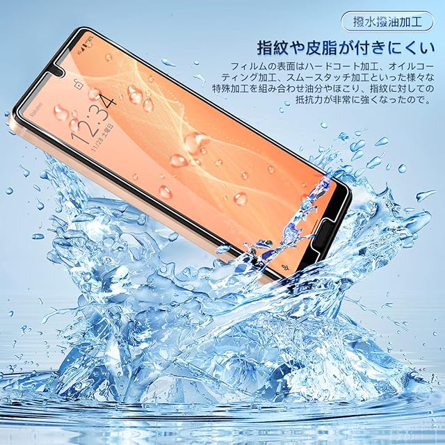 ★【防水·耐油汚れ·指紋防止】フィルムの表面はハードコート加工、オイルコーティング加工、スムースタッチ加工といった様々な特殊加工を組み合わせ油分やほこり、指紋に対しての抵抗力が非常に強くなったので,指紋や汚れの跡が画面に付きにくく、スマホをずっときれいなボディーを保持させ、頻繁にスマホを拭く悩みがなくなります。