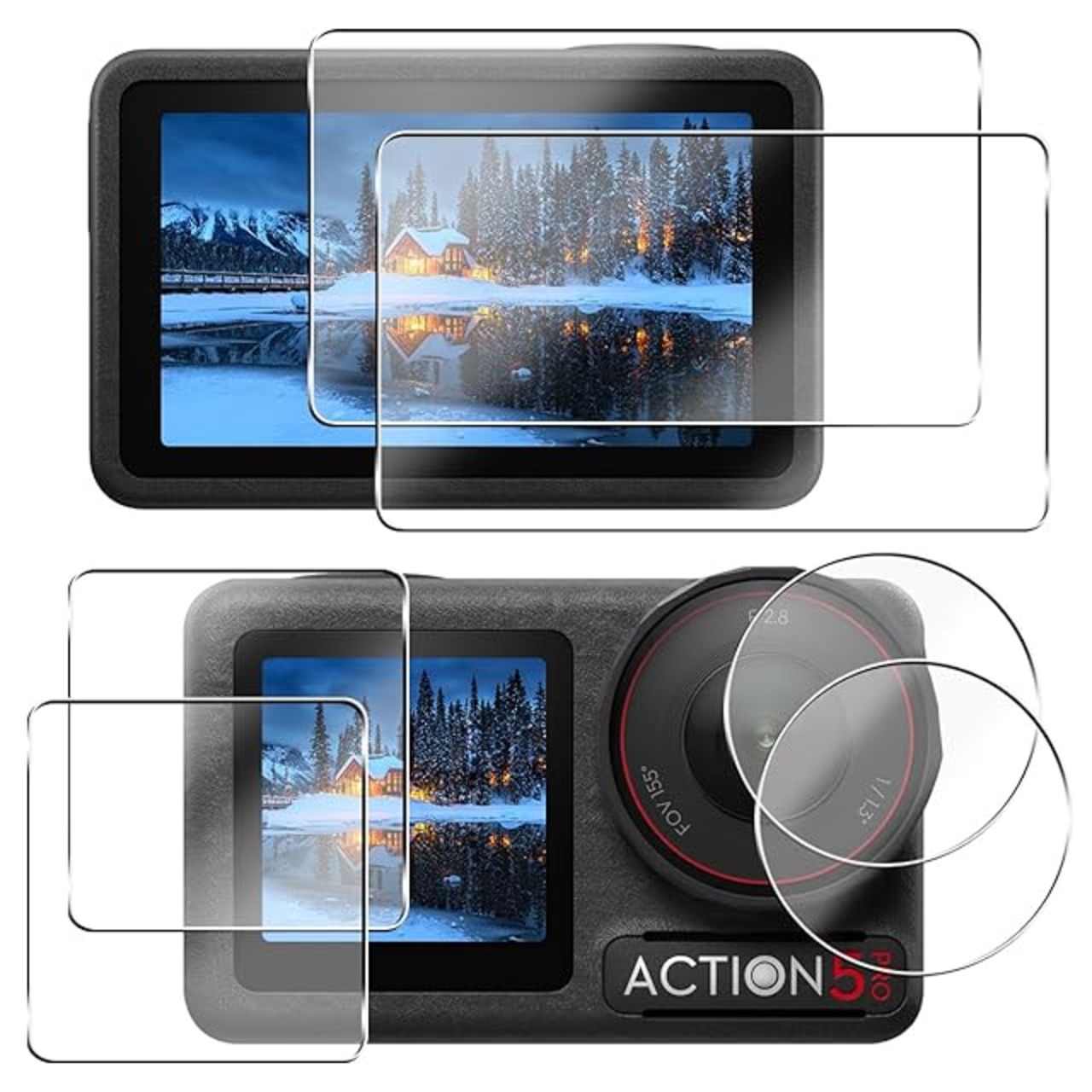 ★【対応機種·スムーズな操作】 DJI Osmo Action 5 Pro 用 ガラスフィルム +カメラフィルム。【月販30,000部が突破したお得な6枚セット】 メイン画面用2枚 + サブ画面用2枚 + LED保護フィルム2枚のお得なセットはお客様に大好評されており、ご家族にシェアしたり、家庭予備用としてもご利用いただけます。