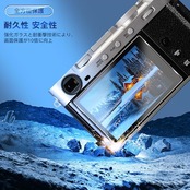 <b>対応機種:対応 FUJIFILM X-E5</b> <br><b>購入前に対応機種をご確認よろしくお願い致します</b> <br><b>厚み0.26mmの強化ガラスを使用した、対応 X-E5 ガラスフィルム。日本製素材旭硝子製を採用しております、9Hの表面硬度を誇る強化ガラス,ナイフに触れても傷つきにくく</b><br><b>【製品特徴】</b> <br>①旭硝子素材硬度9H<br>②貼り付けが可能で、気泡が発生しにくいです<br>③高透過率<br>④撥水・撥油加工で指紋や皮脂の付着を防げ<br>⑤2.5D ラウンドエッジ仕様<br><b>【耐久性 安全性】</b> <br>日本製旭硝子素材の採用、9H硬度、強化ガラス 耐衝撃、スクラッチ防止。飛散防止加工、激しい衝撃を受けてもガラスフィルムは貼り付けのままでございます<br><b>【貼り付けやすい】</b> <br>気泡防止 アルコールパッド・クリーニングクロス・静電気ホコリ取りシートを使用することにより 気泡が入りにくく、誰でも簡単に貼り付けることができます<br><b>【99%高透過率】</b> <br>透過率99%超えのフィルムで、液晶画面の鮮明度を損なうことなく画面本来の美しさをそのまま表現<br><b>【指紋防止】</b> <br>指紋防止、飛散防止 撥油コーティング加工されているため、耐油性に優れ、指紋がつきにくく、付着した汚れなどは簡単に拭きとれます<br><b>【2.5D加工】</b> <br>2.5Dラウンドエッジ処理でフィルムの角を丸く加工することで、装用時もカメラ角部分の違和感が無く高級感がアップ。<br><b>パッケージ内容</b> <br>2×保護フィルム<br><b>貼り付け方法:</b><br>ステップ1:まず、付属の緑色の「1」ウェットシートでスクリーンに付いた汚れを拭きとります。<br>ステップ2:次に、ピンク色の「2」ドライシートで水滴や指紋などを拭きとります。<br>ステップ3:付属の青色シールを使って、ホコリやごみをきれいに拭きとります。<br>ステップ4:ガラスフィルムをカメラに貼ります。揭下透明的胶卷贴纸。液晶の上に軽く置きながら、位置を調整してください。埃が付かないように注意してください。<br>ステップ5:中央から外の方に、押しながら貼り付けます。