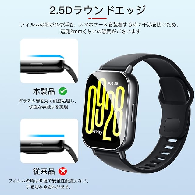 商品名:対応 Xiaomi Redmi Watch 5 Active 2インチ ガラスフィルム 【3枚セット 日本旭硝子製】 対応 シャオミ スマートウォッチ Redmi Watch 5 Active フィルム 強化ガラス 液晶保護 カバー 硬度9H 耐衝撃 高感度タッチ 指紋防止 自動吸着 気泡ゼロ 貼り付け簡単