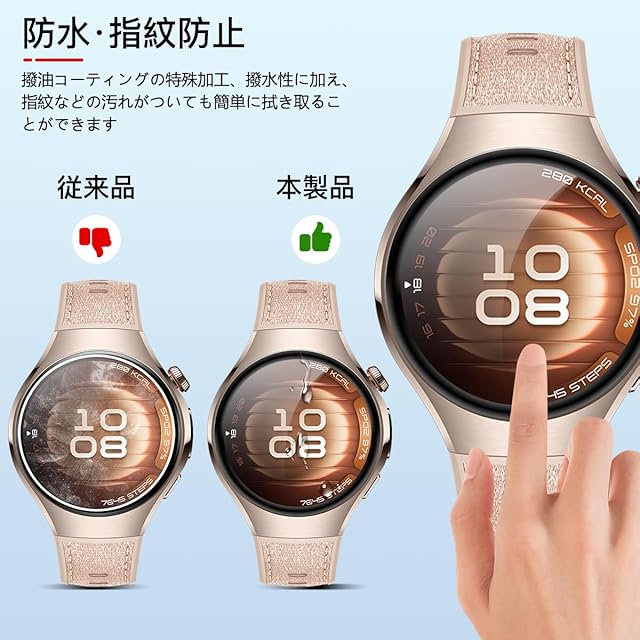 ★【3D曲面加工・全面保護】先端技術の 3D ラウンドエッジ加工により、液晶の曲面を完全にカバーします。カーブしたエッジも完璧にカバーできます。従来の 2.5D ラウンドエッジ製品よりもフィット感が優れています。対応 HUAWEI Watch 5 42mmを全面的に保護し、角割れの防止にも効果的です。これはスクリーンに最大のカバー範囲を実現するように設計されました。