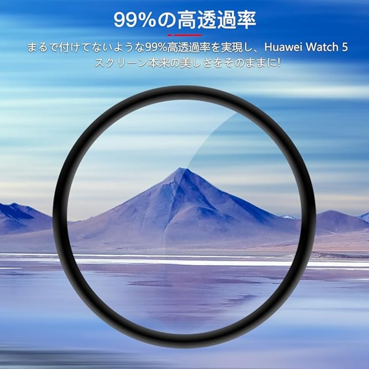 <b>対応機種:対応 HUAWEI Watch 5 42mm</b> <br><b>購入前に対応機種をご確認よろしくお願い致します</b> <br><b>パッケージ内容</b> <br>3×全面保護フィルム<br>1x取扱説明書<br>1x気泡除去ヘラ<br><b>非常に柔らかいウレタン素材を採用する事により、湾曲部分に追従し画面の端まで保護することができ、ファーウェイ Watch 5 42mm独自のデザインを損なわず、まるでフィルムを貼ってないような仕上がりになります。</b><br><b>【製品特徴】</b> <br>①高品質のTPU素材<br>②貼り付けが可能で、気泡が発生しにくいです<br>③高透過率&高感度タッチ<br>④撥水・撥油加工で指紋や皮脂の付着を防げ<br>⑤キズ修復機能<br><b>【柔らかいTPU素材】</b><br>PMMA+TPU製素材、エッジ部分に柔軟で丈夫な炭素繊維素材を採用した為、湾曲部分に追従し画面の端まで保護、保護機能を更に強化させます!さらに、ガラスと違い、割れる心配もありません。<br><b>【キズレスと気泡レス】</b><br>優れた伸縮性を持っていて、フィルム表面の細いキズと貼り付け時に小さい気泡が発生てしまった場合、通常24時間内で消えます。<br><b>【貼り付けやすい】</b> <br>気泡防止 アルコールパッド・クリーニングクロス・静電気ホコリ取りシートを使用することにより 気泡が入りにくく、誰でも簡単に貼り付けることができます<br><b>【99%高透過率】</b> <br>透過率99%超えのフィルムで、液晶画面の鮮明度を損なうことなく画面本来の美しさをそのまま表現,よい手触り感でしかもスムーズな操作感をご体験いただけます<br><b>【指紋防止】</b> <br>指紋防止、撥油コーティング加工されているため、耐油性に優れ、指紋がつきにくく、付着した汚れなどは簡単に拭きとれます<br><b>【3D設計】</b> <br>画面の曲面に沿った3D設計で、端末のデザインを損なわずに衝撃から守るフルカバーフィルム、 市販の99%の保護ケースと干渉しなく、相性が良いものです。<br><b>【スムーズな操作感】</b> <br>高感度タッチ 極薄の厚さでタッチスクリーンの反応を損なわず表面のオイル加工により快適な操作が可能。<br>スクリーンにタッチするとすぐにフィードバックができます。遅延の心配はありません<br><b>貼り付け方法:</b><br>ステップ1:アルコールパッドを使ってスクリーンの汚れを拭き取リます。<br>その後、乾いた布でスクリーンをさらに徹底的にぬぐい取ってください。<br>[1]はアルコールパック[2]は乾いた布<br>ステップ2:ダストステッカー(ホコリ除去シール)で軽く叩いて、スクリーンに残っている小さなホコリを取り除きます。<br>ステップ3:保護フィルムを分離するために底部キャリアシートを曲げます。ホコリがつかないように注意してくさい。<br>ステップ4:保護フィルムを液晶画面に合わせてゆっくりと貼り付けてください。<br>ステップ5:保護フィルムの中央を軽く押して、液晶画面に自動的に吸着させます、さらに気泡除去ヘラで余分な気泡を拭き取る。<br>ステップ6:貼り付けてから、再度クロスで保護フィルムを拭きます。