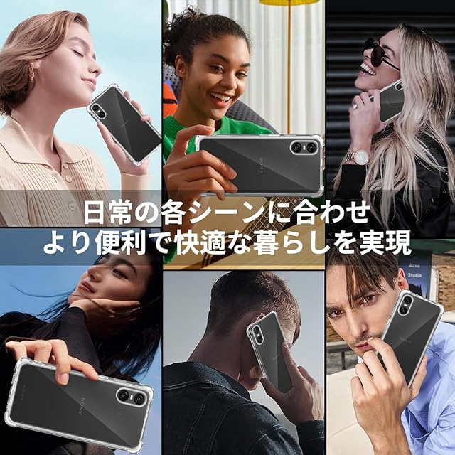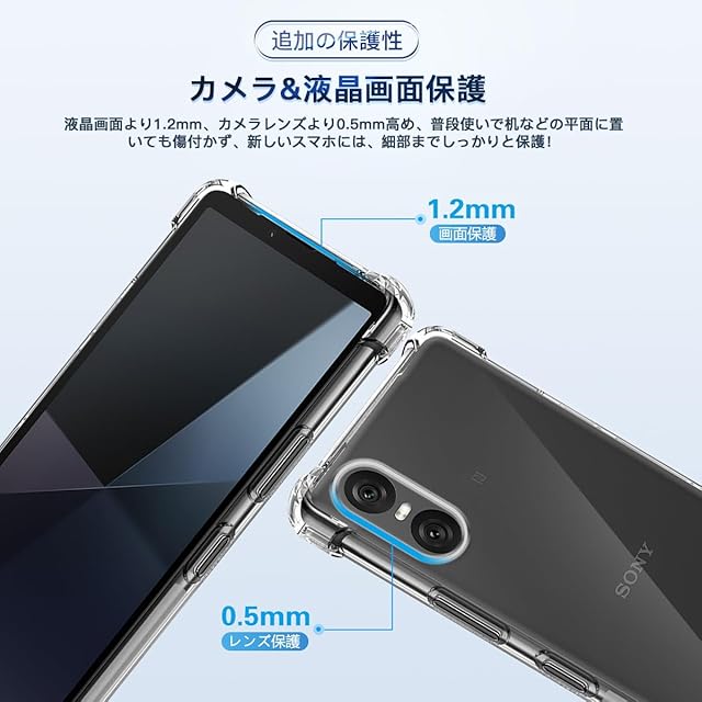 <b>対応機種:対応 Xperia 10 VI</b> <br><b>購入前に対応機種をご確認よろしくお願い致します</b>高品質のPCとTPU素材を採用した保護ケースは、四隅には高耐震クッションを搭載しており、高い耐衝撃性です。スマホを全方位からしっかりと守ります。<br> <b>【製品特徴】</b> <br>①超高耐衝撃性②滑りにくい③抜群な透明感④超精密なタッチ⑤ワイヤレス充電<br><b>【耐衝撃性、さらに強化】</b> <br>コンクリートの地面に厚さ5mmの合板を敷き、高さ1.2mから合計26回、違う角度から落下させる実験をしましたが、本体に傷はつきませんでした。<br>どんな衝撃的な旅にもスマホを守り抜く保護力を誇り、頑強なバリアを築き上げた。さらに、米国防総省が制定した米軍MIL規格に完勝し、業界最高の耐衝撃性を誇ることを証明しています。<br><b>【画面·カメラ保護】</b> <br>面と背面カメラ部のフチを高く設計し、液晶画面とカメラレンズをキズから保護します。<br>スマホを机などの平面に置いた場合に、液晶画面とカメラレンズが接触してできるキズが最小限に抑えられるよう、表側(液晶画面側)は1.2mmの、裏側(背面側)は1mmの高低差をつけ、ちゃんと携帯を保護することができます。<br><b>【精確な穴あけ加工】</b> <br>外周はTPU(ウレタン樹脂)で滑りにくく持ち易い上にクッション性も高いです、長く使っても熱がこもらない。<br>本体にぴったりフィイットするよう設計し、精巧をきわめていることの孔位で、充電するやイヤホンで音楽を聴くことにも支障なく使用でき、携帯へ負荷を掛けずに楽々装着できます。<br><b>【ワイヤレス充電対応】</b> <br>ケースはワイヤレス充電に対応しており、ケースを付けたまま充電器に置くだけで充電が可能。<br> <b>【指紋防止】</b> <br>指紋防止、飛散防止 撥油コーティング加工されているため、耐油性に優れ、指紋がつきにくく、付着した汚れなどは簡単に拭きとれます<br><b>【簡単に脱着する方法】</b> <br>スマホを横向きに左手で持ち。右手の親指でXperia 10 VI SO-52E / SOG14 / XQ-ES44カメラの部分を上に押しながら、右手の差し指でスマホケース右上の角を下に押し出してケースを外す。