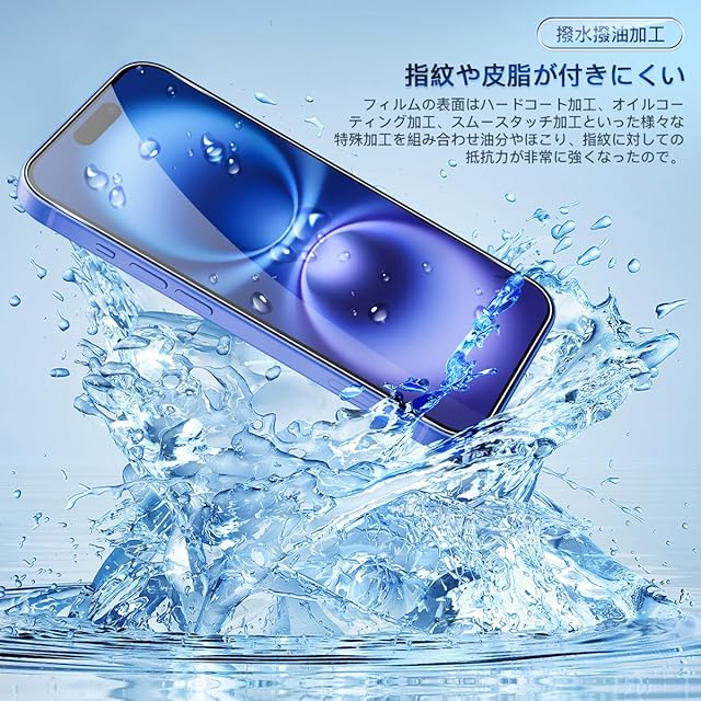 ★【防水·耐油汚れ·指紋防止】フィルムの表面はハードコート加工、オイルコーティング加工、スムースタッチ加工といった様々な特殊加工を組み合わせ油分やほこり、指紋に対しての抵抗力が非常に強くなったので,指紋や汚れの跡が画面に付きにくく、スマホをずっときれいなボディーを保持させ、頻繁にスマホを拭く悩みがなくなります。