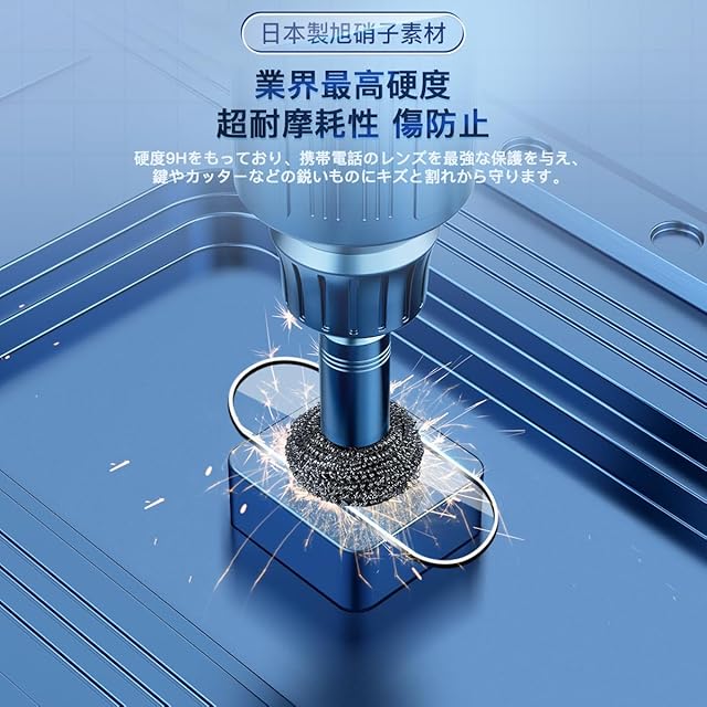 ★【業界最高硬度・耐衝撃性!】 日本製旭硝子素材を採用し、硬度 9H の超強化ガラスにハードコーティング技術を施しています。1 メートルの高さから 10kg の荷重を 30 回繰り返し落下させる過酷な試験に合格した実績を持ち、日常生活で遭遇するキーやカッター、コインなどの鋭い物による傷からも端末をしっかり保護します。 さらに、飛散防止加工により、万一ガラスが破損した場合でも破片が飛び散ることを防ぎ、破片はほぼ固定された状態を維持するため、使用者の安全を確実にサポートします。