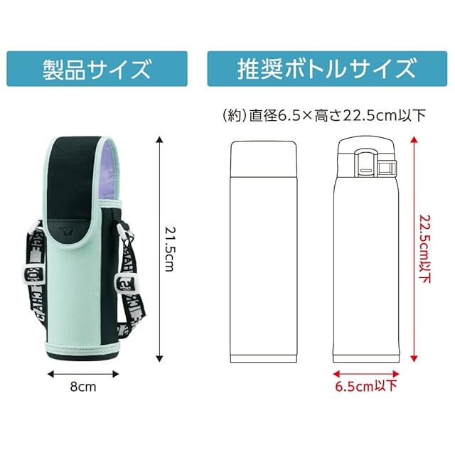 商品名:象印マホービン 水筒カバー 480ml用 肩掛け 洗濯機洗いOK 自立しやすい丈夫な底 ステンレスボトルカバー ペールミント MC-BA02-GZ