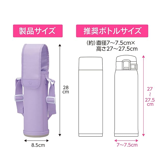 象印マホービン 水筒カバー 720ml用 肩掛け 洗濯機洗いOK 名前が書けるネームタグつき ステンレスボトルカバー パープル MC-CA04-VA