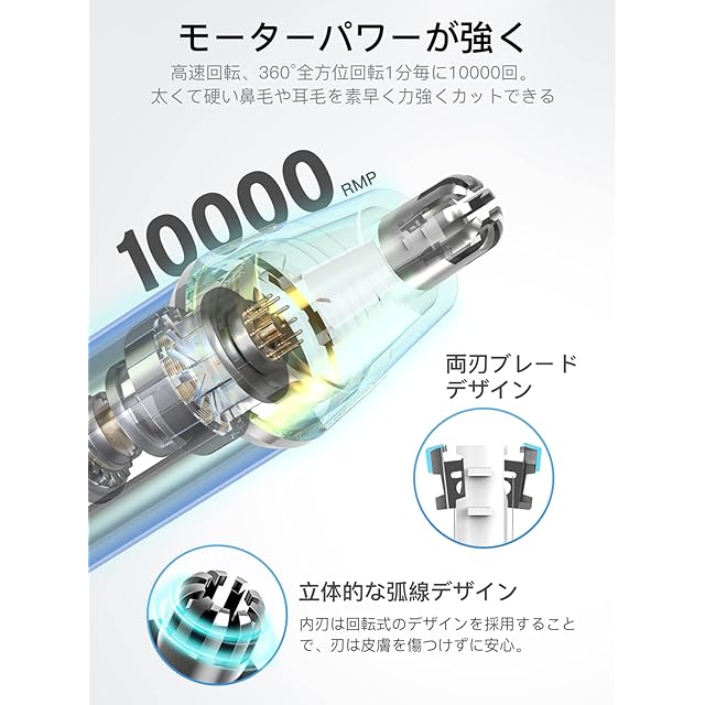 高回転速度,強動力モータ,10000RPMモーター台 360°両刃ブレード 「R」型アーク設計,肌を傷つけない IPX5防水,水洗い可能 USB 充電式 1台4役,男女兼用 持ち運び便利 弊社はいつまでもよりよい鼻毛かったー メンズを作るために、徹底的な検品検査をおこなっています。しかし、万が一不良品が発生した場合は弊社がいつまでも安心なアフタサービスを提供しております。もしご使用際に何か質的な問題を発生してしまう場合は一年間内に弊社とご連絡してください。24時間に返事いたします。お客様に寄り添ったアフタサービスを提供することは弊社が目指す目標でございます。