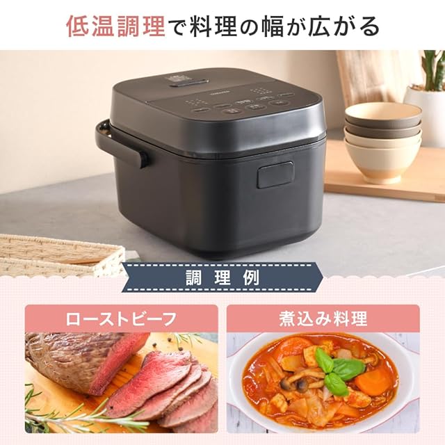 商品名:【.co.jp限定】[山善] 炊飯器 一人暮らし 5.5合 3種類炊き分け機能 マイコン式 低温調理 無洗米モード 保温 予約機能 ブラック AMRC-10M(B)