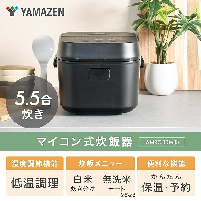 【.co.jp限定】[山善] 炊飯器 一人暮らし 5.5合 3種類炊き分け機能 マイコン式 低温調理 無洗米モード 保温 予約機能 ブラック AMRC-10M(B)