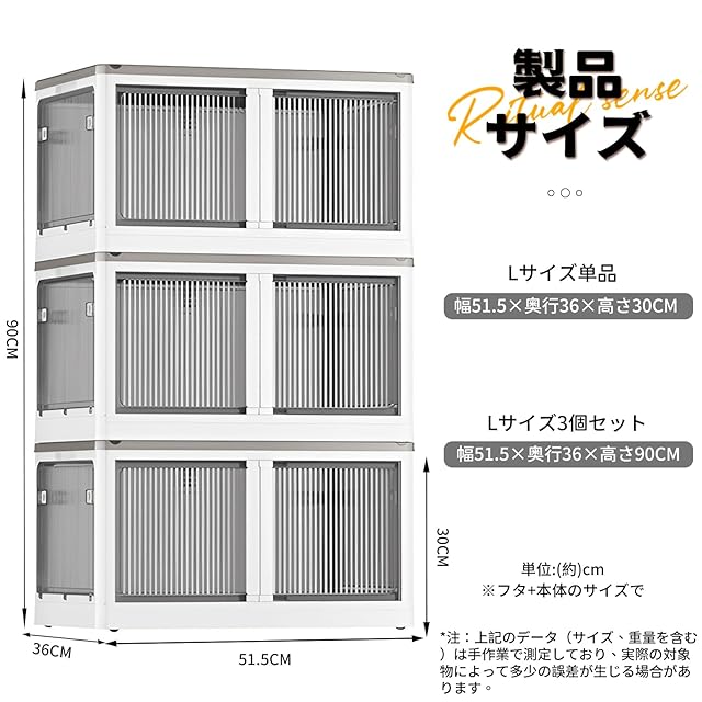 商品名:X XUNTAO【収納ボックス 折りたたみ】蓋付き 積み重ね 全方向から取り出せる 両開き扉 3個セット 収納ケース 衣類 布団 小物 収納 折り畳み コンテナ ボックス 大型 プラスチック キャスター付き おしゃれ 防塵 防カビ 防湿 無臭 半透明 厚み 強い耐荷重 大容量 家庭用 車用 複数のサイズ 各種カラー(L3個セット,51.5cm*36cm*30cm,55.6L)