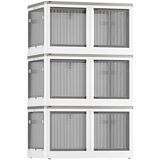 【折り畳み▪上に蓋/側面扉付き】収納箱界の大革新!使わない時に折りたたんで収納できます。スペースを取りません。側面四面も扉付き、収納にとても便利です。上にふた付き、物を入れやすい。蓋をロックできます。物を取るは側面扉から、ボックスを積み重ねる状態にも楽に物を取り出して、伝統的な収納ボックスに比べてもっと便利で、機能性が向上します。