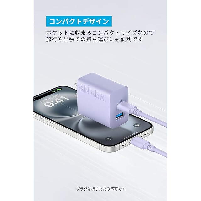Anker Charger (20W, 2-Port) with USB-C & USB-C ケーブル パープル 2個セット