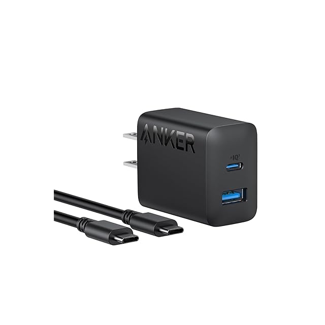 Anker Charger (20W, 2-Port) with USB-C & USB-C ケーブル (20W USB-C&USB-Cケーブル付属 2ポート急速充電器)【PSE技術基準適合/USB PD対応/PowerIQ搭載/コンパクトサイズ】 Android スマートフォン iPad その他 各種機器対応 (ブラック)