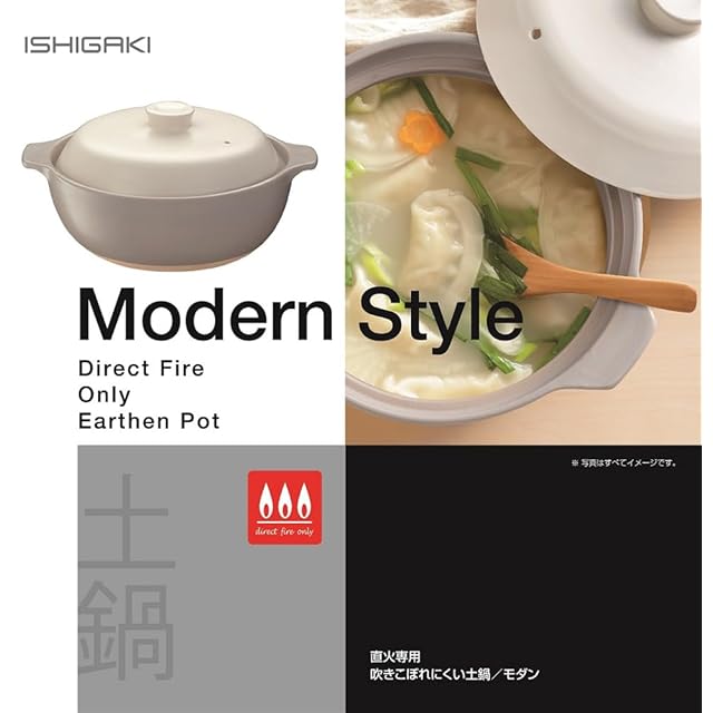 商品名:イシガキ 鍋 6号 白 グレー 約直径23×奥行19×高さ11cm 容量約0.9L 吹きこぼれにくい 土鍋 モダン 1~2人用 ガス火 4284