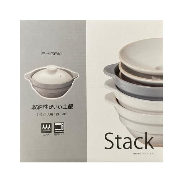 商品名:イシガキ 鍋 5号 グレー 約直径20×奥行16.5×高10.5cm 容量約0.65L 収納がいい 土鍋 1人用 ガス火 電子レンジ対応 4296