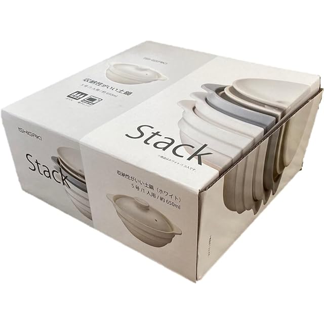 イシガキ 鍋 5号 白 約直径20×奥行16.5×高10.5cm 容量約0.65L 収納がいい 土鍋 1人用 ガス火 電子レンジ対応 4295