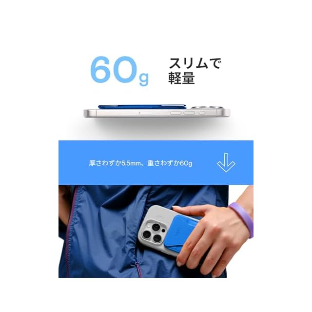【カード1~2枚収納・身軽に外出】スリムなデザインでありながら、クレジットカードや運転免許証などをすっきり収納可能です。スタンドを展開してすぐに取り出せ、畳めるとカードのようにスマホに付け、場所をとりません。
