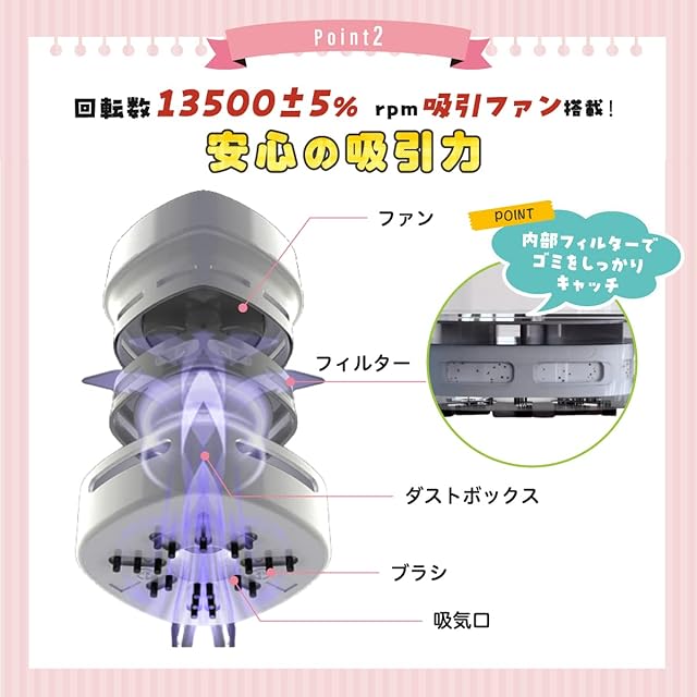 ✅【家族みんなが使いやすく、お子様の自主的な清掃に!!】 『SUI-COM』は、かわいらしいデザインと手に取りやすいコンパクトなサイズが特徴の”卓上クリーナー”です。強力な吸引力により、消しカスやお菓子の食べこぼしなど、日常の細かなゴミをサッと簡単に掃除できます。仕事机や学習机、リビングの机等、日々の生活で発生する細かなゴミの清掃に大活躍です!!