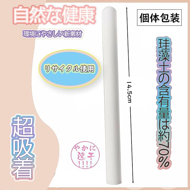 商品名:Rouly 珪藻 除湿スティック 折れにくい カップ除湿 珪藻土 カップ用 吸水 除湿 消臭 抗菌 清潔 洗面所 速乾 乾燥用 15×1.5cm 吸水 繰り返し使用可能 3セット ホワイト