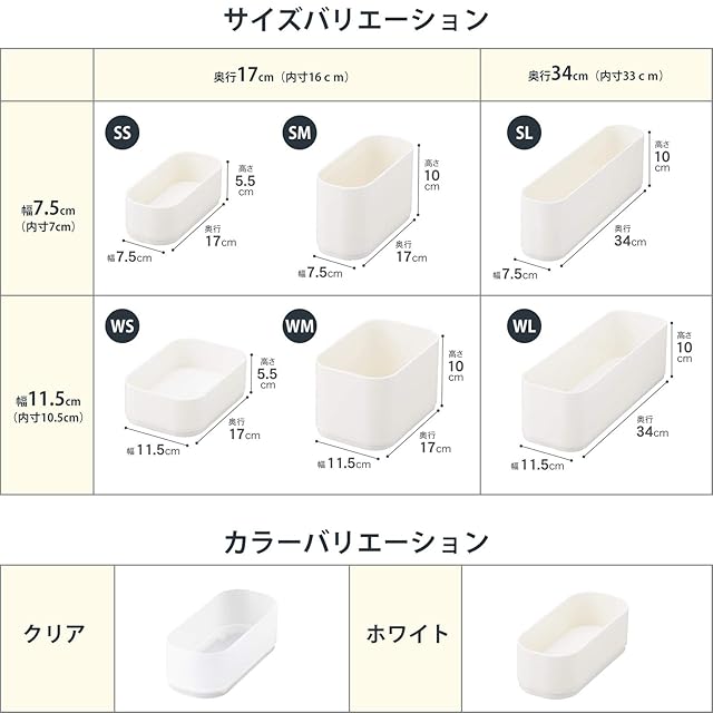 全6サイズで、収納ケースに合わせて自由に組み合わせできます。