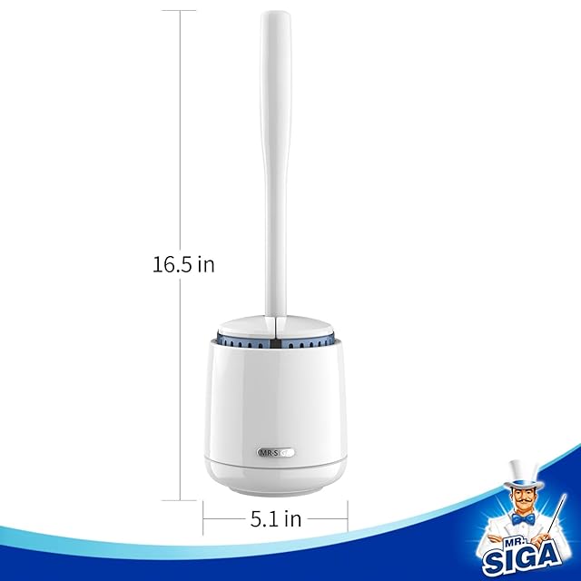 MR.SIGA トイレブラシ 収納ケース付き 丈夫なハンドルと耐久性のある剛毛付きバスルーム掃除、ホワイト、1セット