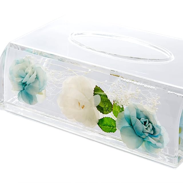 商品名:パシフィックGLD ティッシュBOXケース アクリル水中花 ホワイト&ブルー W24.5×D15×H8.5cm 58801