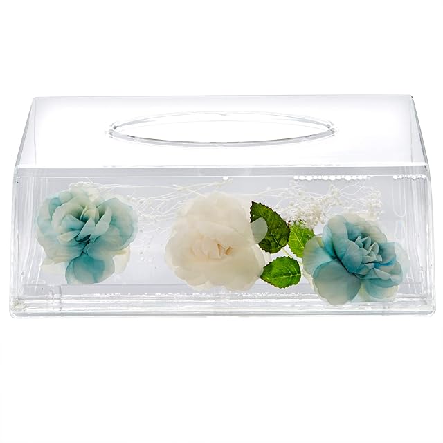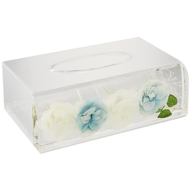 パシフィックGLD ティッシュBOXケース アクリル水中花 ホワイト&ブルー W24.5×D15×H8.5cm 58801