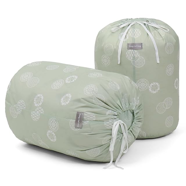 商品名:アストロ 収納袋 グリーン Lサイズ 2枚組 丸めて簡単収納 羽毛布団収納 巾着袋 収納バッグ 筒型 縦置き 積み重ね保管 626-33